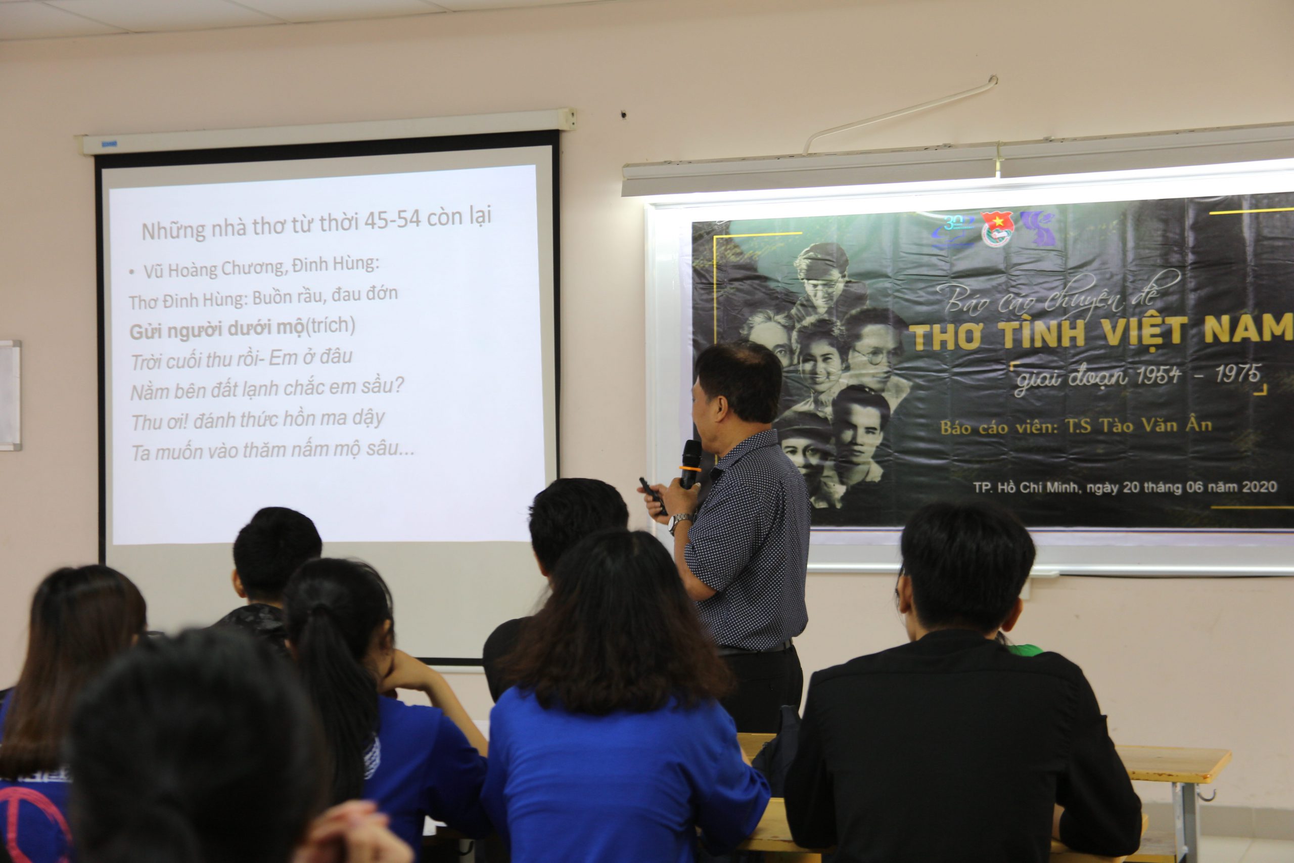 Sáng ngày 20/06/2020, Đoàn khoa Xã hội học – Công tác xã hội – Đông Nam Á đã tổ chức buổi báo cáo chuyên đề “Thơ tình Việt Nam giai đoạn 1954 -1975” với sự góp mặt của báo cáo viên TS. Tào Văn Ân và sự tham gia đông đảo của các bạn sinh viên.