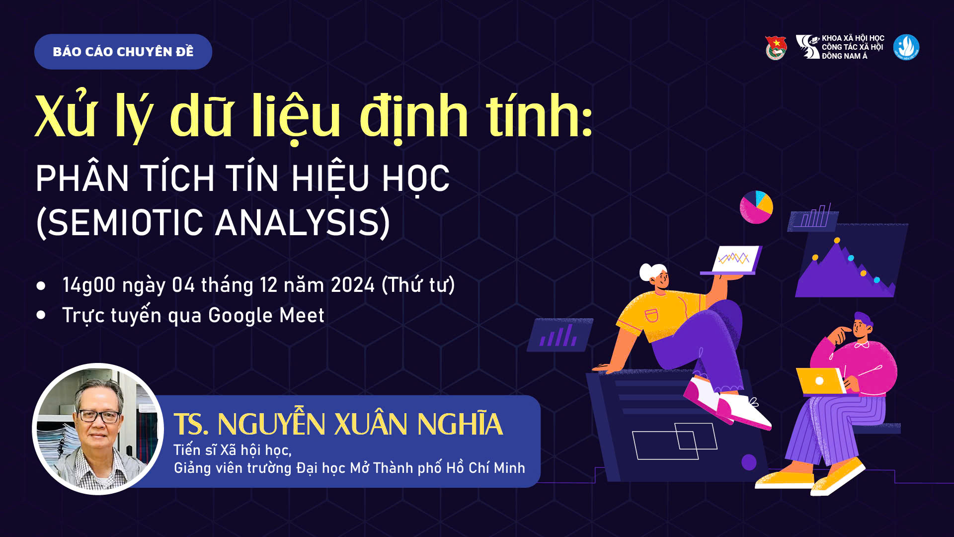 Báo cáo chuyên đề “Xử lý dữ liệu định tính: Phân tích tín hiệu học (semiotic analysis)” Do TS. Nguyễn Xuân Nghĩa trình bày Thời gian diễn ra sự kiện: 14g00 ngày 04/12/2024 (thứ tư) Đường link tham dự buổi báo cáo: https://meet.google.com/roj-egme-okx Quyền lợi sinh viên: sinh viên tham dự được cộng 03 điểm rèn luyện vào […]