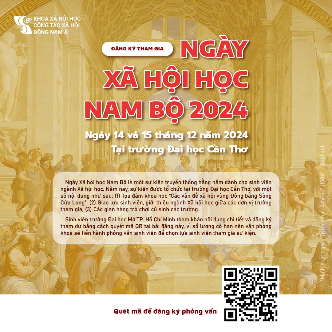 Ngày Xã hội học Nam Bộ là hoạt động thường niên của các trường đại học tại khu vực phía Nam có đào tạo ngành Xã hội học, được tổ chức luân phiên giữa các trường. Năm 2024, Trường Đại học Cần Thơ đăng cai tổ chức, Trường Đại học Mở Thành phố Hồ Chí […]