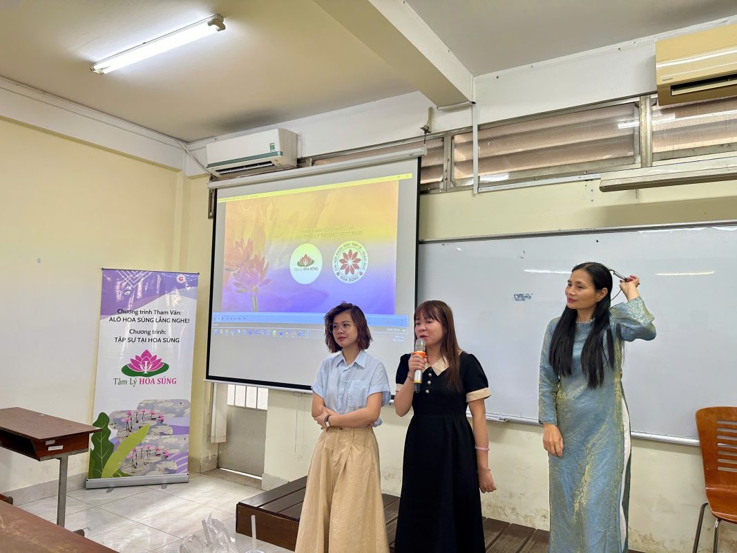 Sáng nay, ngày 26/03/2026, tại cơ sở 97 Võ Văn Tần, Trường Đại học Mở TP.HCM, hơn 80 sinh viên ngành Tâm lý học và Công tác xã hội đã tham gia buổi chuyên đề do chuyên gia Lê Thị Minh Tâm cùng các Tham vấn viên từ Tâm Lý Hoa Súng dẫn dắt.