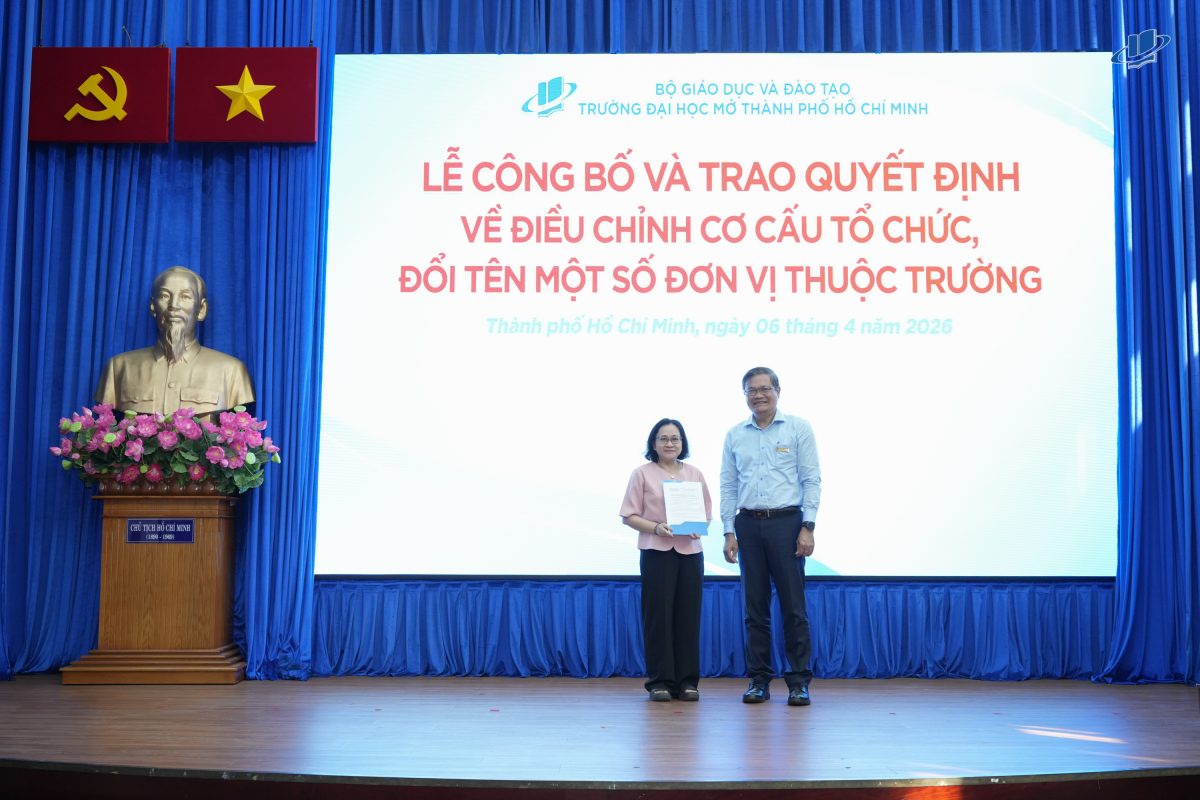 Sáng nay, ngày 6/4/2026, tại hội trường 202 cơ sở Hồ Hảo Hớn, GS.TS Nguyễn Minh Hà – Hiệu trưởng nhà trường đã chính thức trao quyết định đổi tên khoa cho cô Lâm Thị Ánh Quyên – Phó trưởng (phụ trách) khoa Khoa Khoa học xã hội.