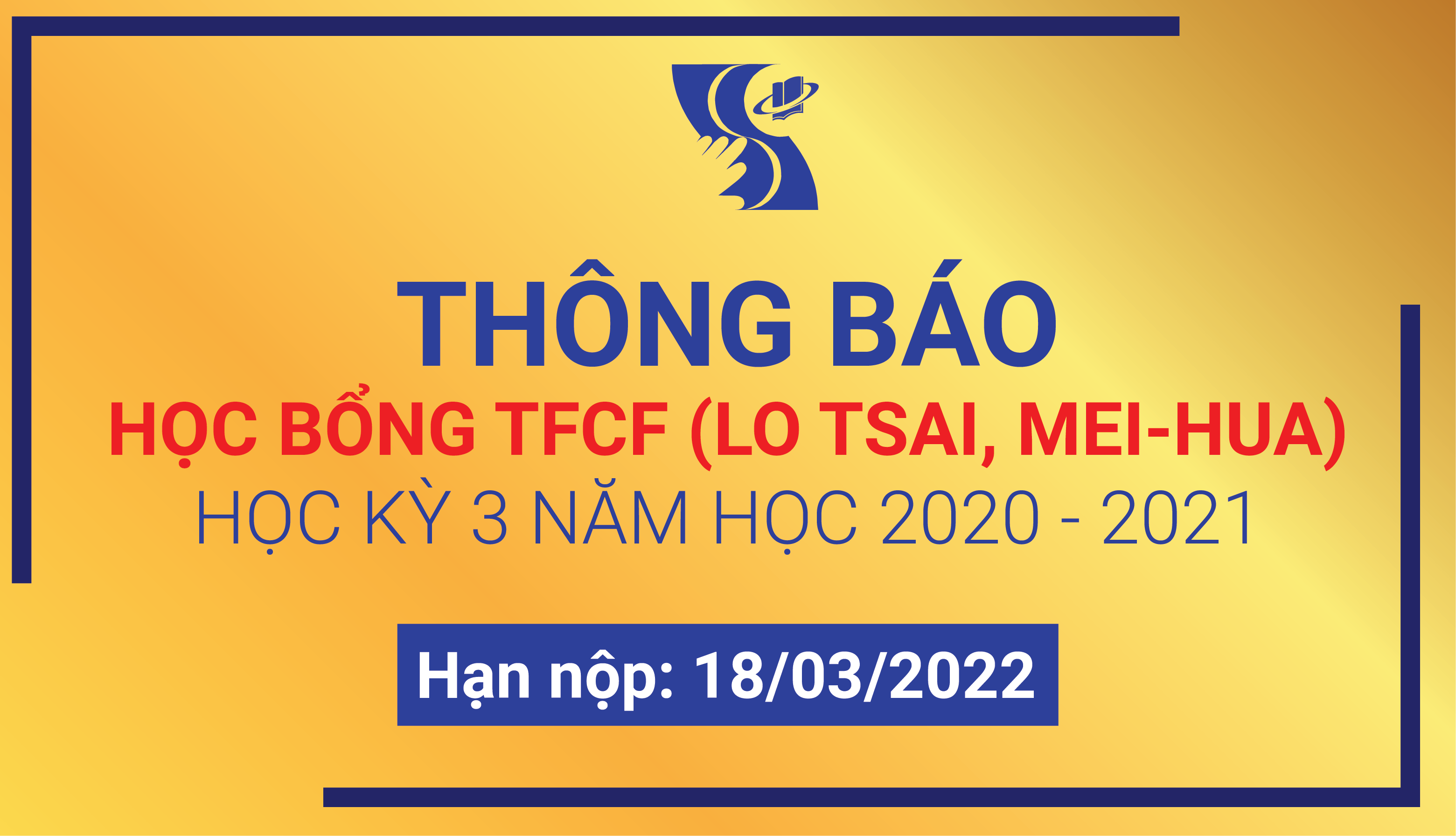 Văn phòng khoa thông báo về việc tiếp nhận hồ sơ ứng tuyển học bổng LO TSAI, MEI-HUA (TFCF) học kỳ 3 năm học 2020 – 2021, cụ thể: