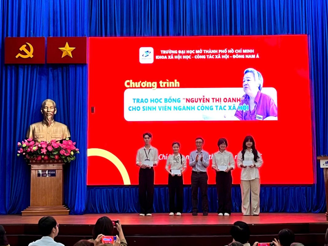 Song song đó, ban tổ chức cũng tổ chức chương trình trao hai học bổng là: học bổng “Nguyễn Thị Oanh” và học bổng TFCF – VIEF đến cho sinh viên ngành Công tác xã hội. Khoa XHH – CTXH – ĐNÁ rất vui mừng và chân thành cảm ơn quý đơn vị đã luôn quan tâm và động hành cùng với sinh viên của Khoa, đây chính là động lực rất lớn giúp sinh viên tiếp tục vững bước trên con đường học tập.